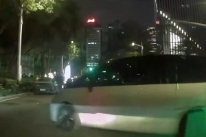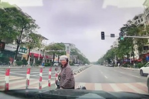汽车过红绿灯时遇到大妈闯红灯,幸好速度不快没撞上