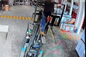 国外工人施工时竟直接站在叉车上,上下无任何防护措施