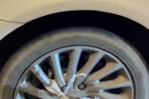 春季出游路上拍下一幕,车子被锁了 直接把锁带走